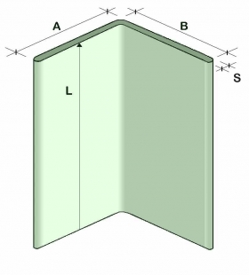 Le dimensioni dell'angolare vengono misurate in mm.: lato A, lato B, spessore S e lunghezza L